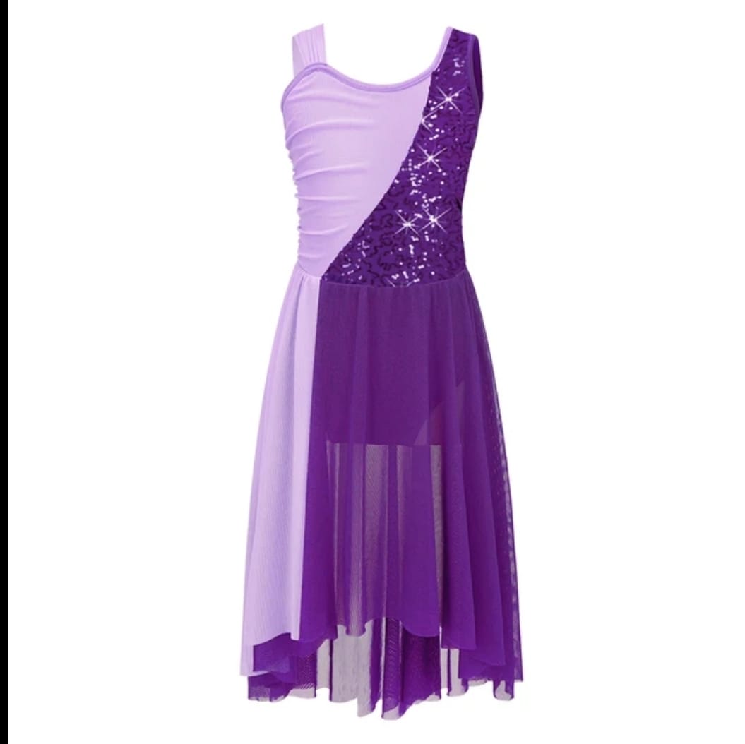 שמלת פייטים לילך וסגול מתאים לכיתות ג׳-ו׳ (יש 20 נוספות משלימות בצבעים הפוכים)