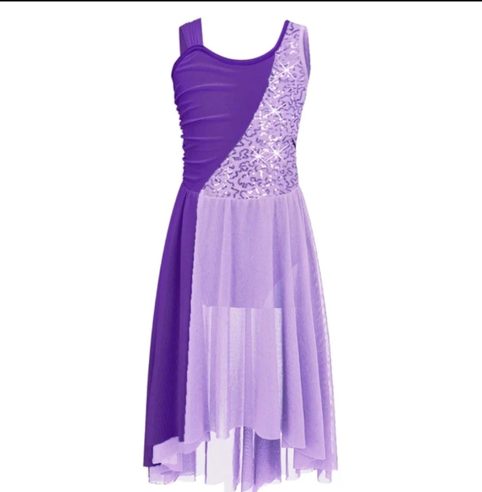 שמלת פייטים סגול ולילך מתאים לכיתות ג׳-ו׳ (יש 20 נוספות משלימות בצבעים הפוכים)